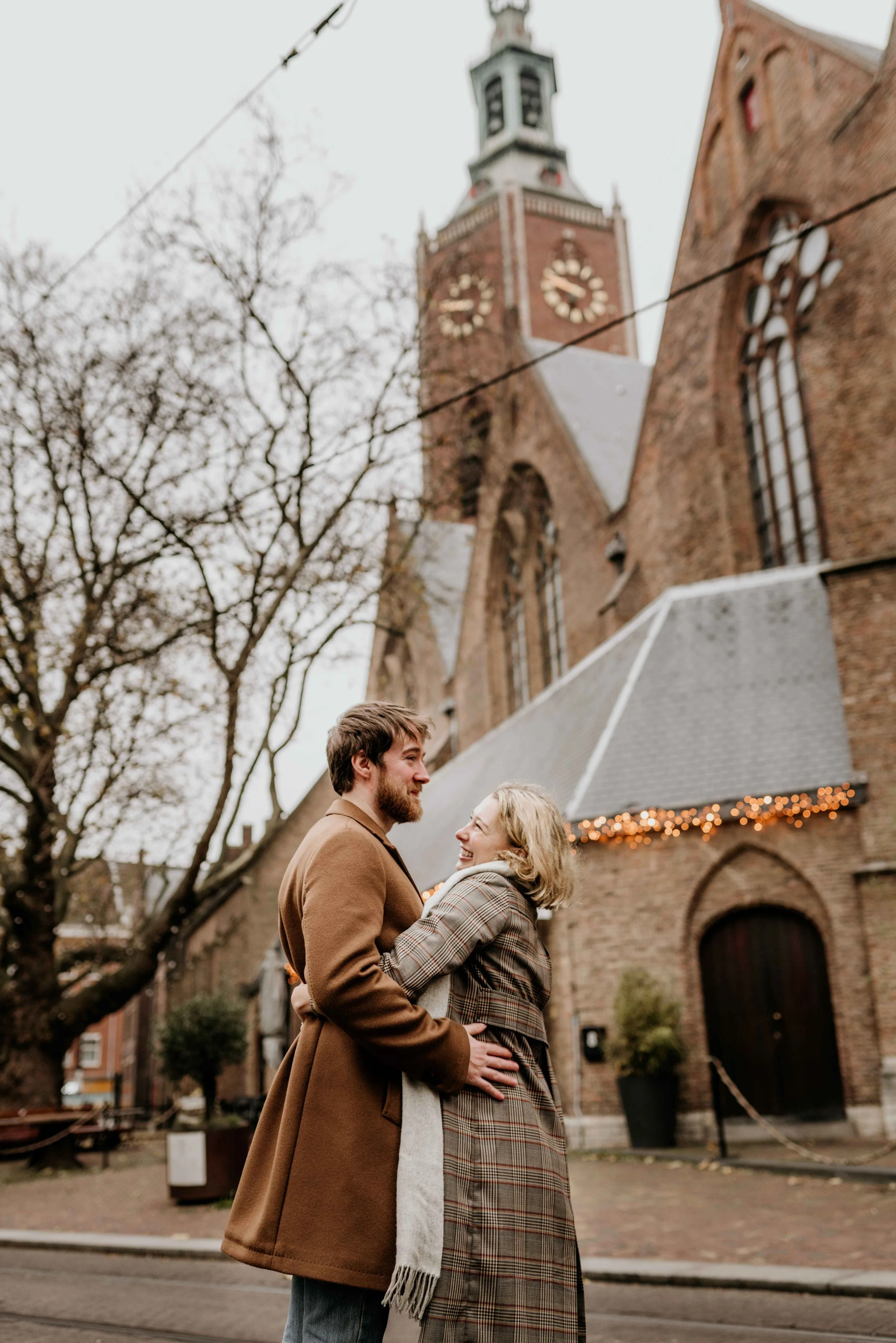 The gloomy weather and the warm lights in the windows of the old part of The Hague make it feel as if we’re in a Dickens novel. In the morning, when the streets are almost empty, we have the perfect opportunity to create beautiful love-story images.