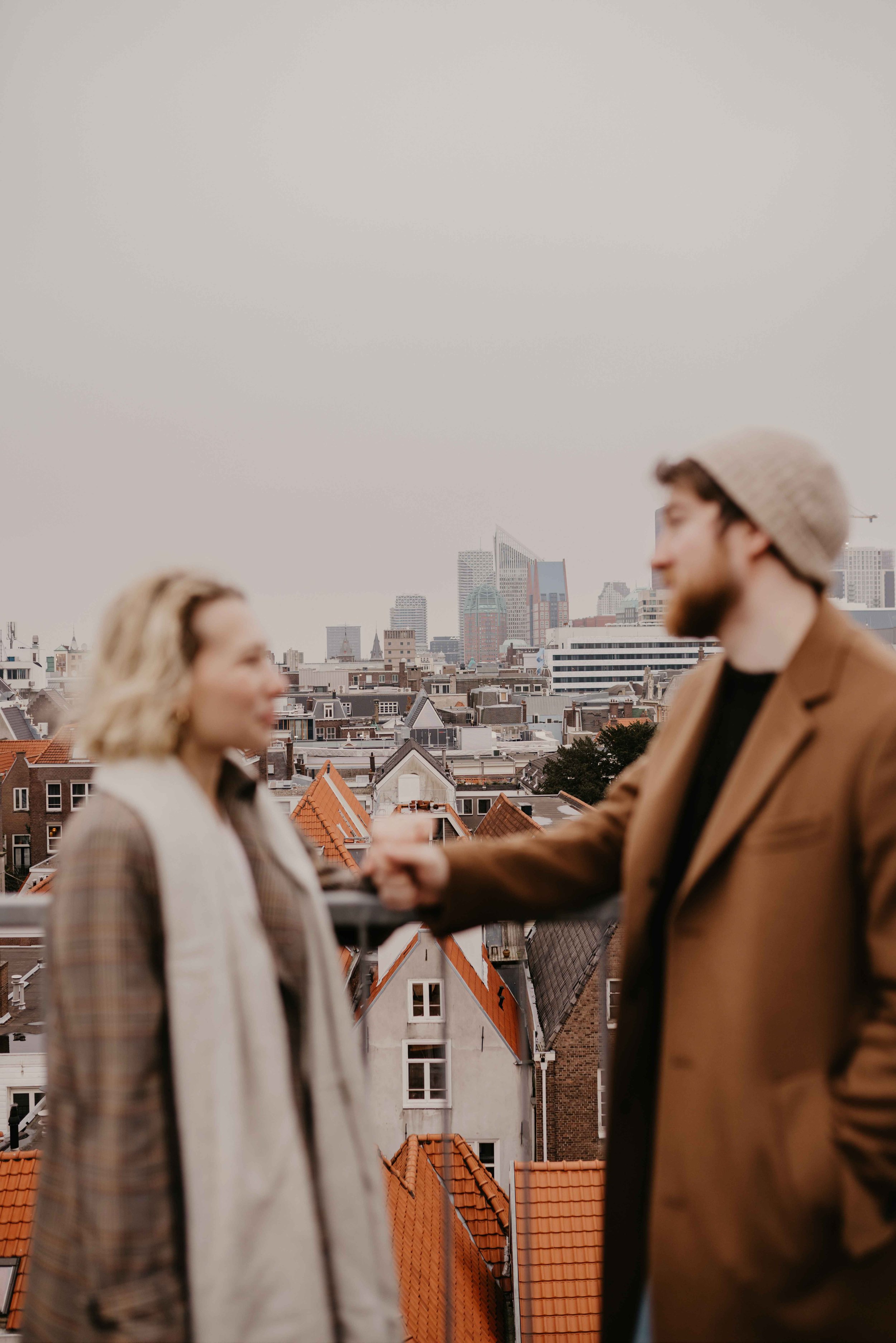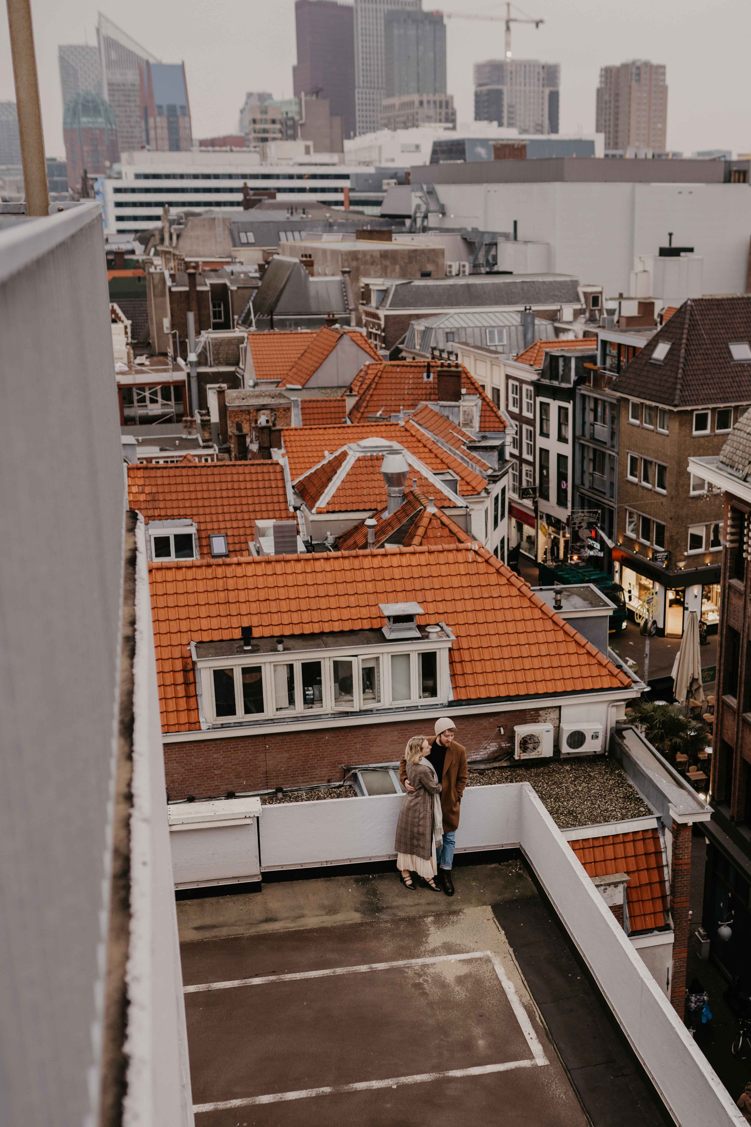 Rooftop picture from the engagement photoshoot in The Hague